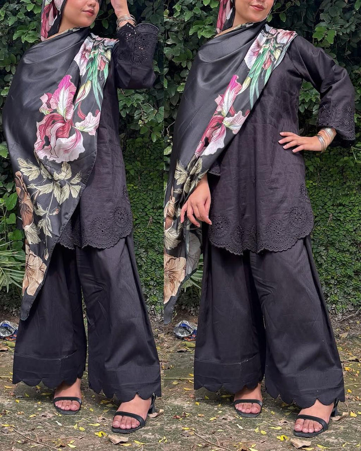 EMB Shirt With SHALWAR WITH DIGITAL MONAR DUPPATA